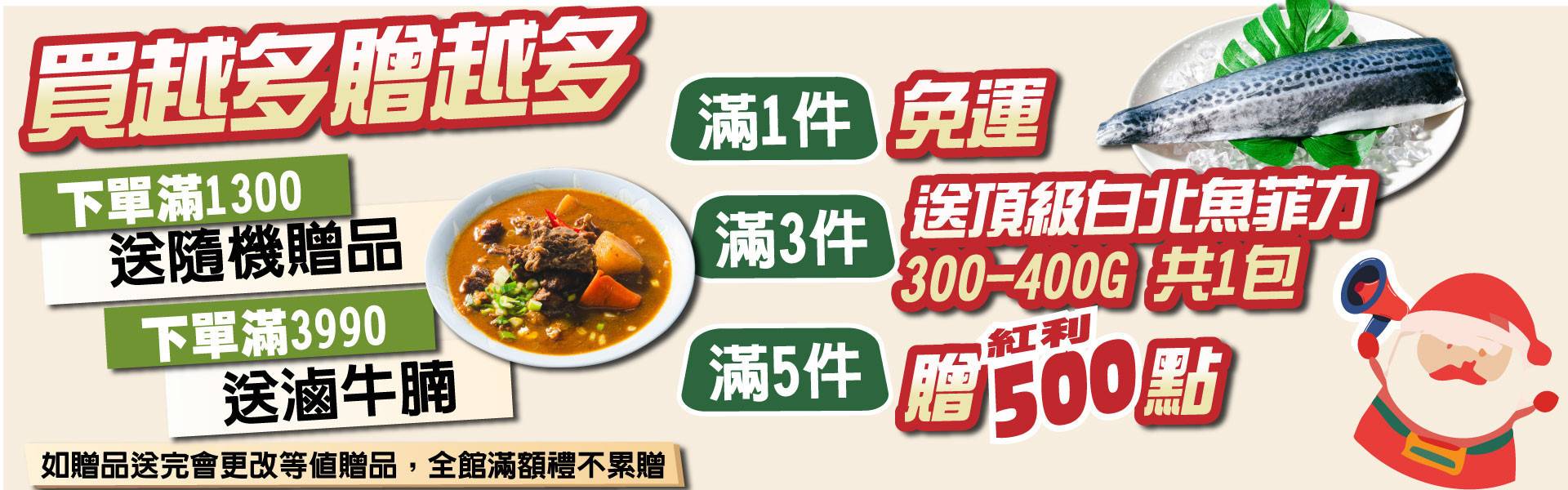 ➤ 滿 3 件:送 頂級白北魚菲力 300g-400g(1包)
