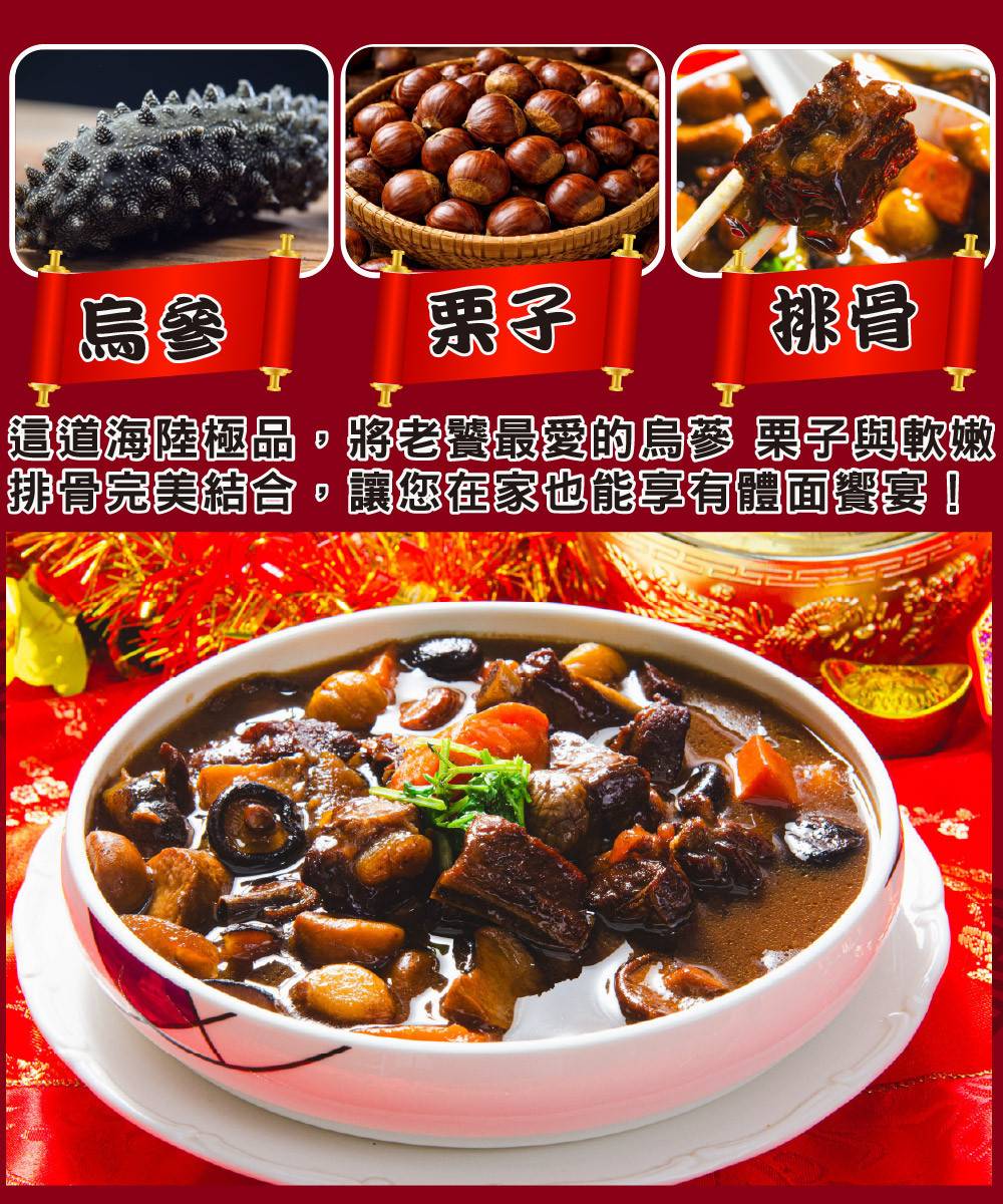 頂級功夫菜! 這道海陸極品,將老饕最愛的烏蔘與軟嫩排骨完美結合,讓您在家也能享有體面饗宴!